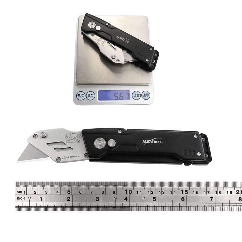ALBATROSS UPK003 Folding Pocket Utility Knife,Quick Change Blades,Black Aluminum Handle, Blade Storage in Handle Design,5 Extra Blade Included, Used for Cartons, Cardboard and Boxes