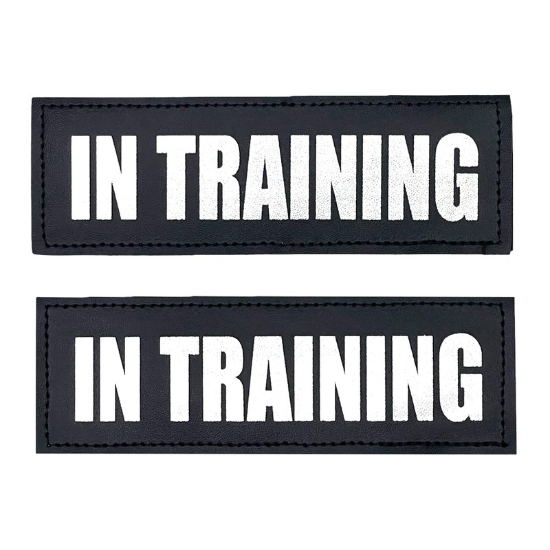 Set of 2 IN TRAINING Reflective and Removable Hook & Loop Patches for XXS - XS - Sm - M - L- XL size Animal Vests and Harnesses Why You Should Buy Our Patches? Our IN TRAINING Patches with Hook and Loop Backs allow you to change the identification of your service dog vest or harness in just a few minutes featuring large, reflective lettering that are recognizable even from a distance. Whether you have more than one service dog or your service dog has multiple jobs, the patches help to indicate its function or status at any time and in any location. You can easily convert an In Training vest to "Service Dog, DO NOT PET, THERAPY DOG. Service animal vests ensure that the public sees your companion as a working dog and not just a family pet. It is essential that the vest reflects the functionality or the current status of a service dog wearing it by using the appropriate service dog patches. You Will Also Receive • Assistance from knowledgeable customer service professionals Working for more than 10Yr with pets, to answer your questions about ALBCORP Service Dog Patches or even more. ALBCORP Service Dog Patches are available in four designs: "SERVICE DOG", "IN TRAINING", "DO NOT PET" and "THERAPY DOG". Each service dog patch is constructed from durable polyester and has a Hook and Loop back. It can be attached to any type of service dog vest that has a Hook and Loop Strip or sewn on to vests if there is no Hook and Loop attachment available. These patches make it easy to update your dog's status and help you save money by allowing you to use a single vest for multiple dogs. Do You Need More? Contact us and we will Take Care of You. Click the Add to Cart Button Now!