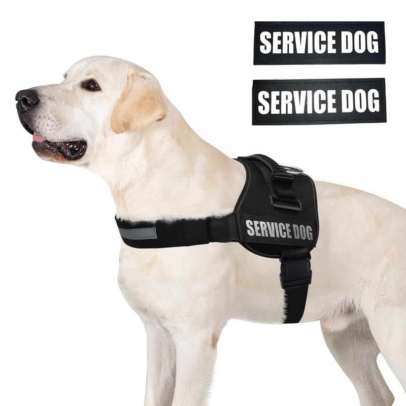 * TWO reflective "SERVICE DOG" patches with sure-grip Hook and Loop backing