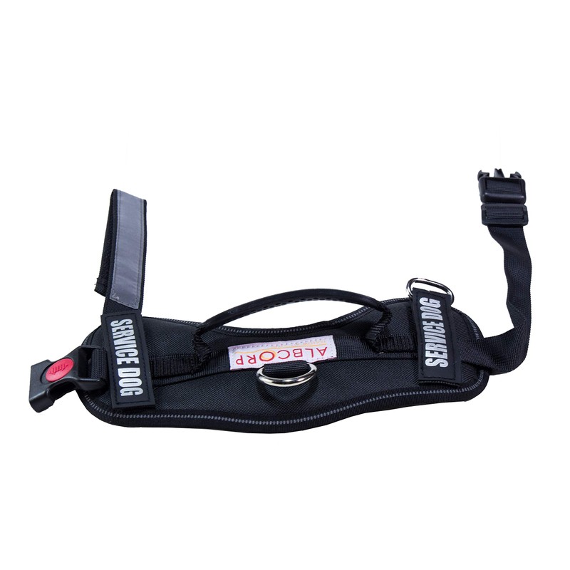 ALBCORP Reflective Service Dog Vest / Harness, Woven Polyester & Nylon, Neoprene Padding, XXS, BLACK