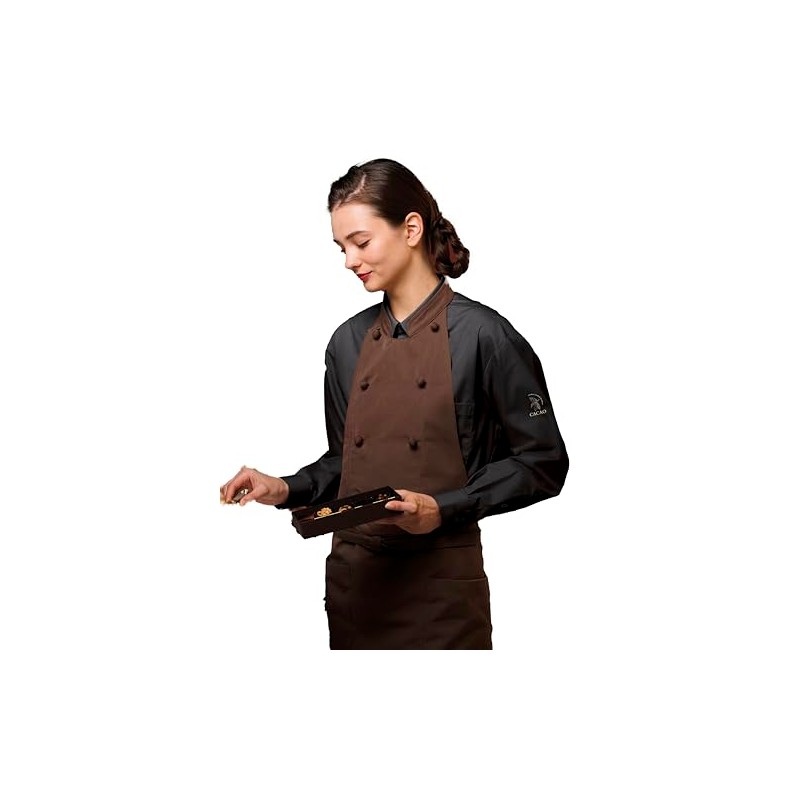 Albe AS9005 Cook Coat Style Apron, Easy to Wear, Stylish, Antibacterial, Deodorizing, Double Buttons, For Food & Drinking, Cafe, Patisserie, Uniform, C-72 Dark Brown