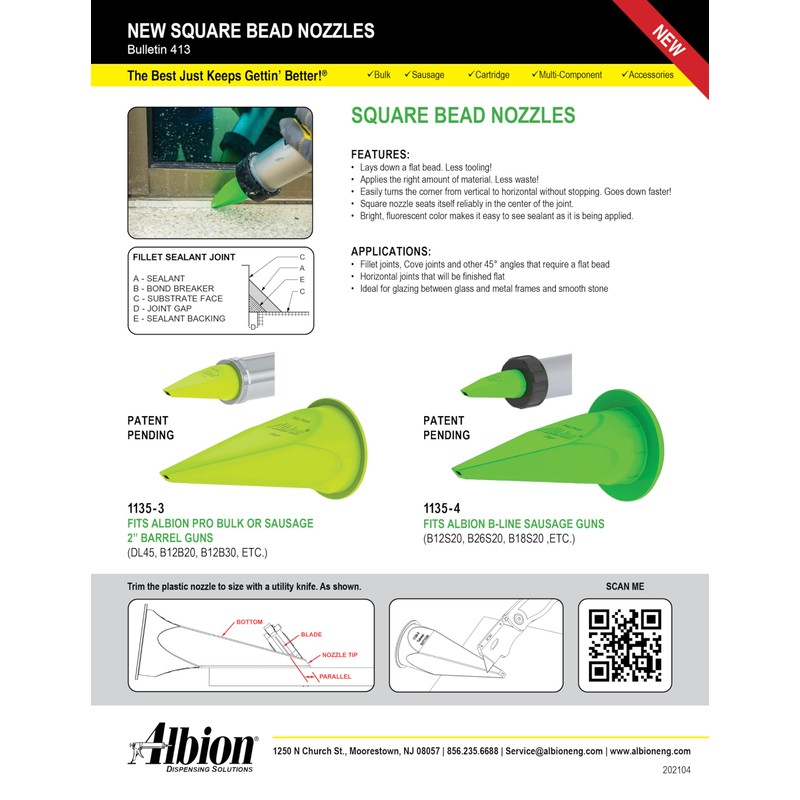 Albion Engineering 1135-4(25 Pack) Square Bead Nozzle for Albion B-Line Sausage Caulking Guns, Green, Pack of 25