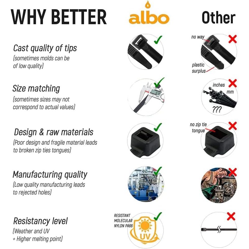 - HIGH QUALITY MATERIAL: Cable zip ties black are made of high quality nylon PA 66 and can be used in temperature ranges between -22°F and 195°F (-30℃ to 90℃).