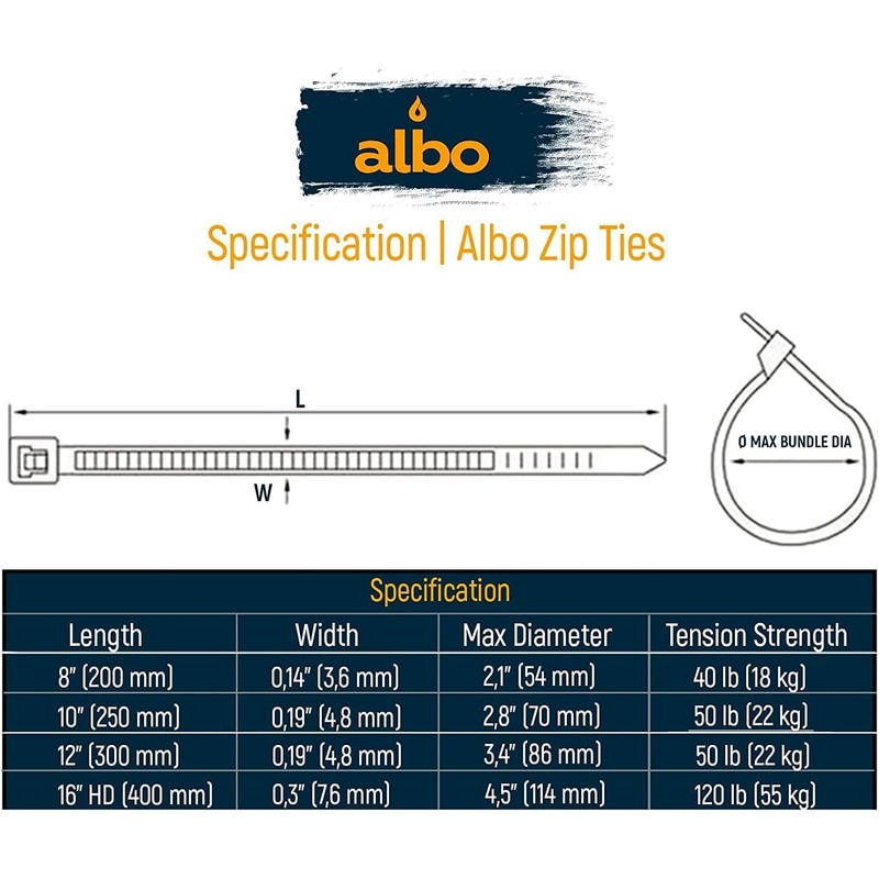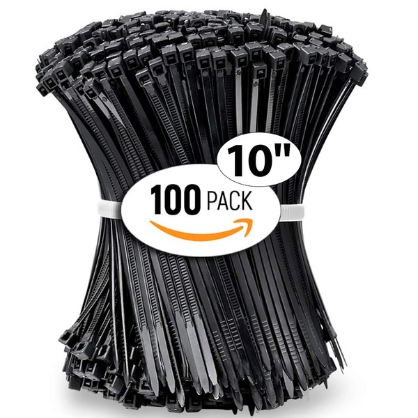 Albo ALBO Zip Ties Black 10 Inch 100 Pack 50 lb, Long Plastic Cable Ties Thick 0.19 Inch Tie Wraps Heavy Duty UV Resistant Nylon Wire Ties for Indoor and Outdoor