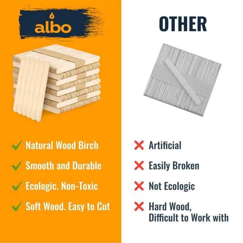 ALBO Birch Popsicle Craft Items 1000 PCS 4.5" Inch Waxing Implements Hard Wax Epoxy & Resin Mixing Tongue Depressor Wood DIY Bulk Craft Supplies Professional Multi-Purpose
