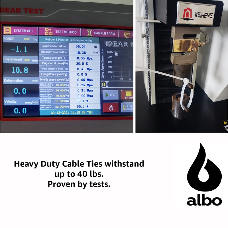 - HIGH QUALITY MATERIAL: Plastic cable ties are made from high quality nylon PA 66 and can be used in temperature ranges from -22°F to 195°F (-40℃ to 90℃). Min install temperature of the black cable ties 6" is 41°F/5°C.
