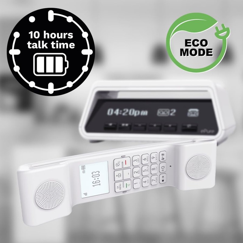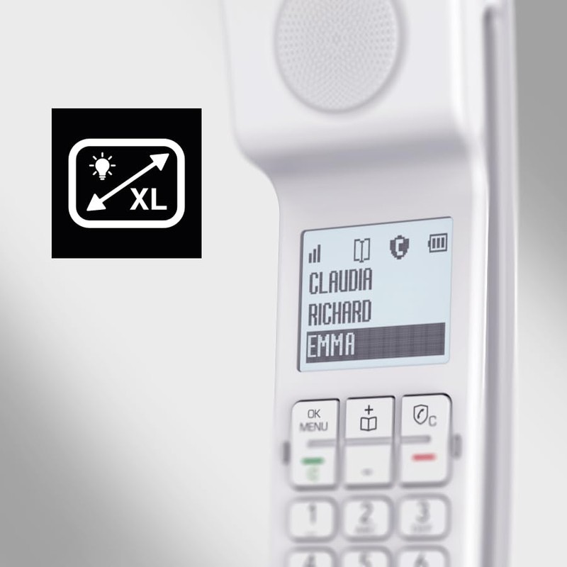 - HANDSET WITH HANDS-FREE AND HIGH-DEFINITION DISPLAY: Highly legible display thanks to white backlighting, high contrast and large characters. High-quality speakerphone for clear calls without having to hold the phone