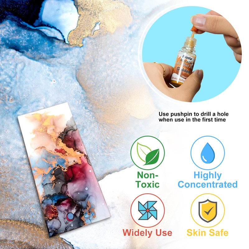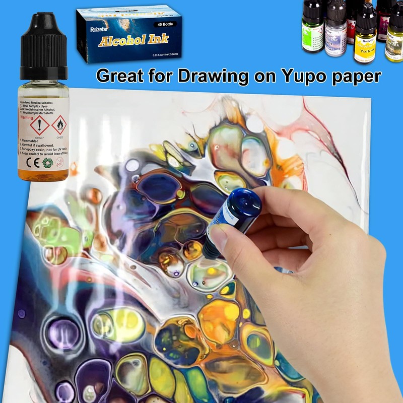 - Wide application: our brilliantly vibrant alcohol ink dyes are versatile and are often used for epoxy resin art, resin painting, resin petri dish making, coasters, cup making, yupo paper, acrylic painting and other alcohol ink art.