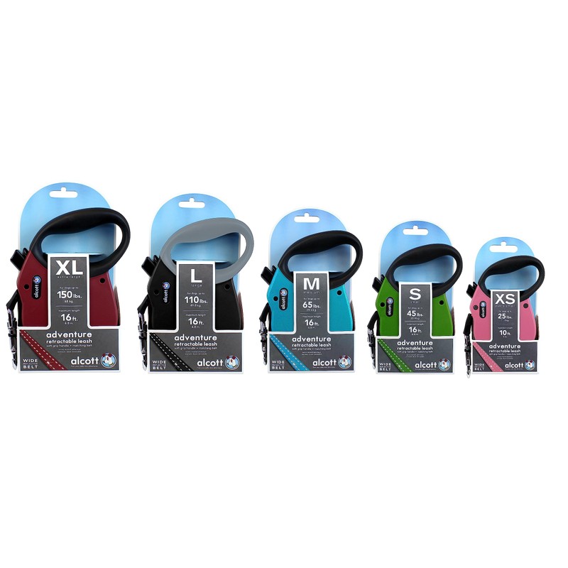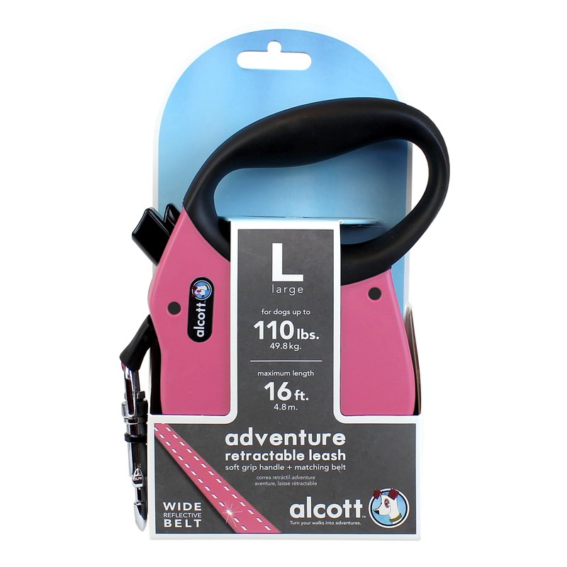 Alcott Adventure Retractable Reflective Belt Leash, 16' Long, Large, Pink