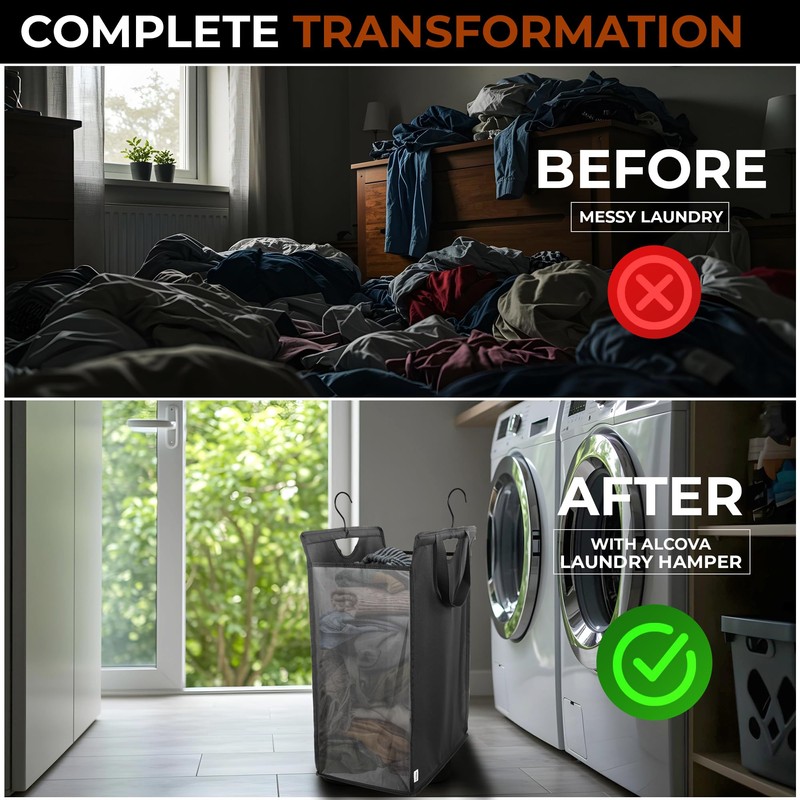 - Dual Sturdy Handles: Featuring dual handles, our hanging laundry basket ensures easy transport to and from the laundry room. These hanging hampers for laundry provide convenience for busy families, college students, and anyone on the go.