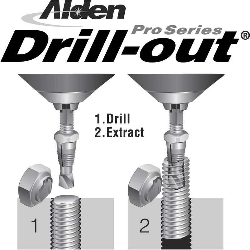 Alden DRILL-OUT Broken Bolt Extractor Kit contains 10 tools for removing damaged screws and broken bolts with the use of a power drill. It is made from high speed tool steel for long life and combines a drill bit as well as extractor in one tool.