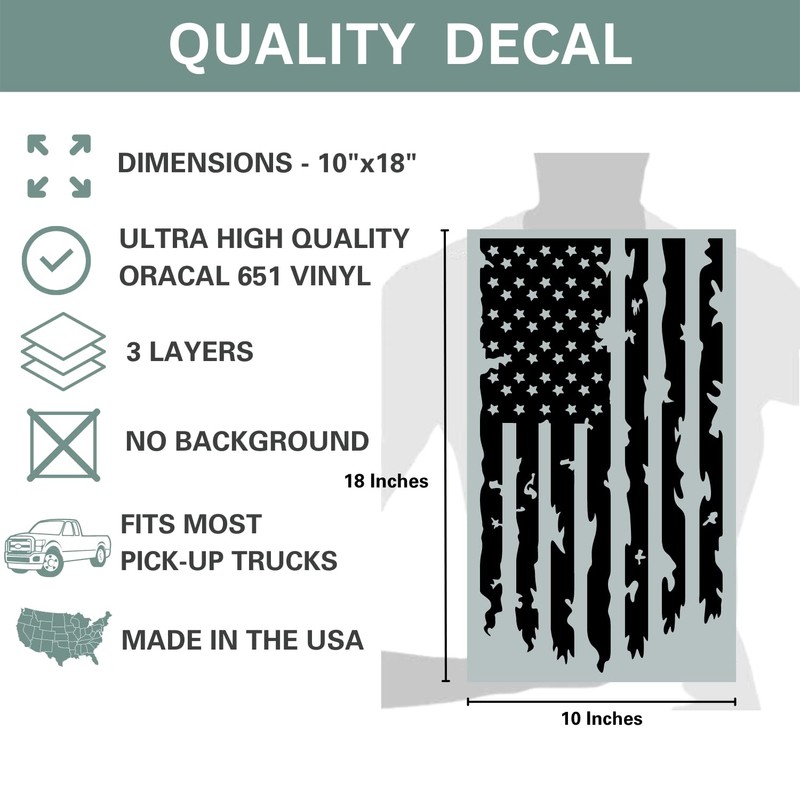 - Durable, fade-resistant, and waterproof decal: our decal for truck is waterproof, heat and cold-resistant. Our decals are designed and made in the USA from a durable vinyl with a 6 years outdoor rating.