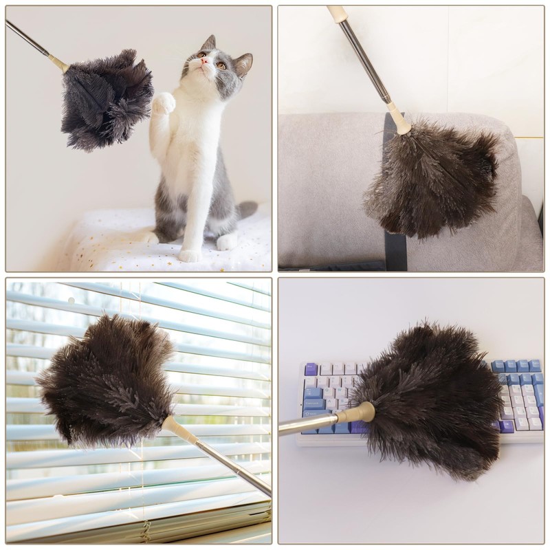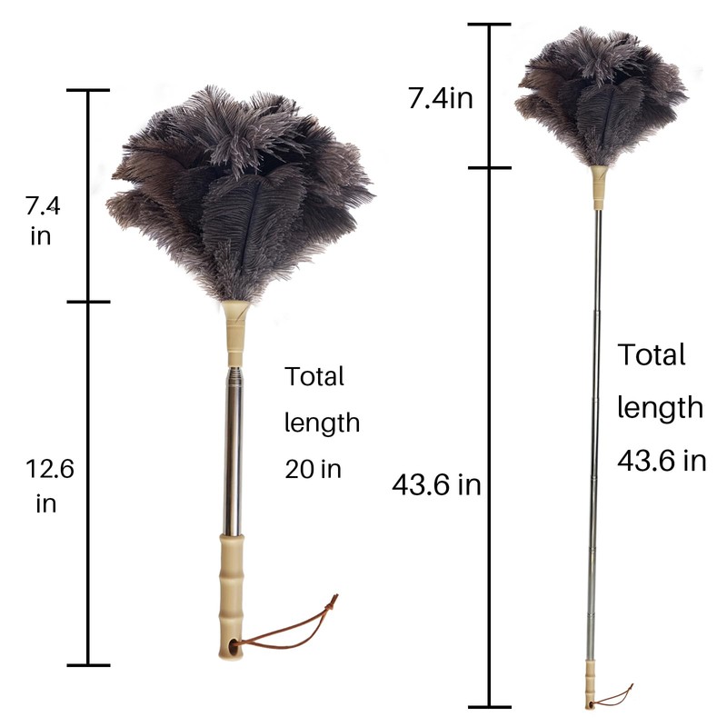 - [Feather Duster with Extension Pole]:The ostrich feather duster comes with a retractable handle, and its total length can be extended from 20 inches to 43.6 inches, making it easy to clean dust from high places. Its stainless steel extendable handle can prevent it from rusting and is convenient for storage.