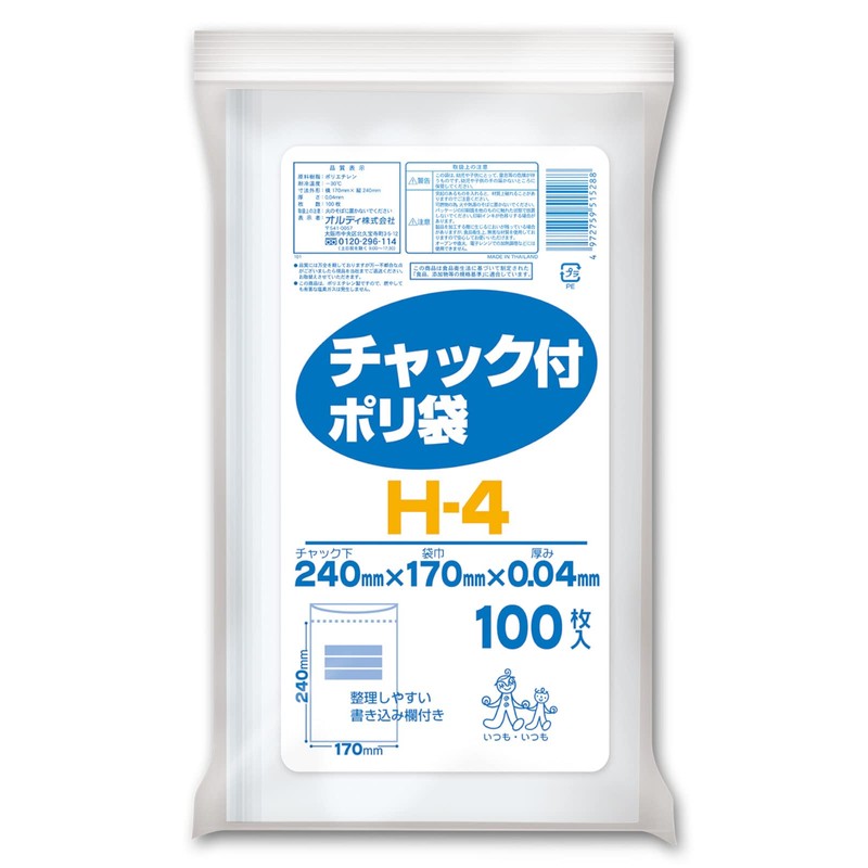 Aldy H-4 Zipper Clear Plastic Bags, Pack of 100, Width 6.7 x Length 9.4 inches (17 x 24 cm), Thickness 0.002 inches (0.04 mm), Writing Field Included