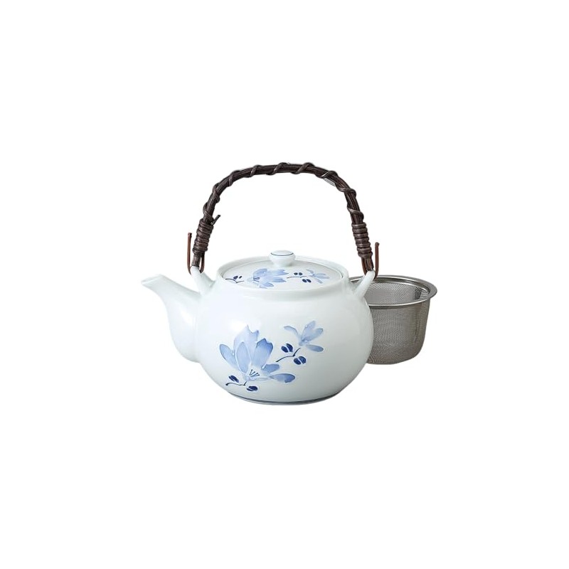エールネット(Ale-net) 急須 ポット (ステンレス 茶こし付き) 12.5×10cm 625cc 有田焼 辻が花 カゴ網付 4号土瓶 磁器 日本製 おしゃれ