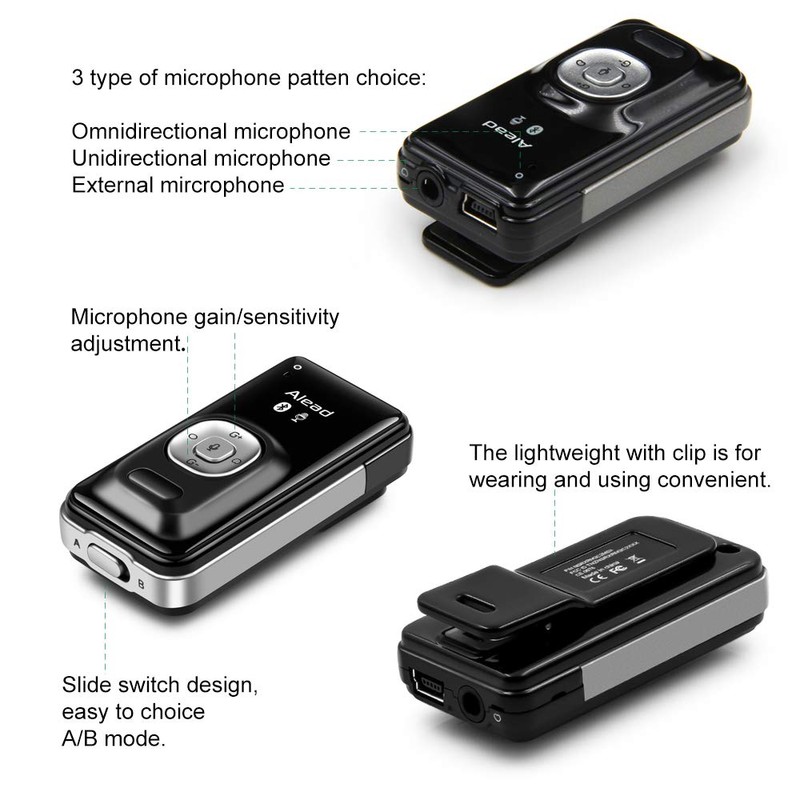 * The default voice or video recording apps of iPhone/iPad/Android DO NOT SUPPORT Bluetooth microphone. Users NEED TO use the voice recording apps with Bluetooth microphone supporting such as “Voice Recorder HD", “audio memos", "Easy Voice Recorder Pro”, “ReadyMIC”, “Captures” and more...