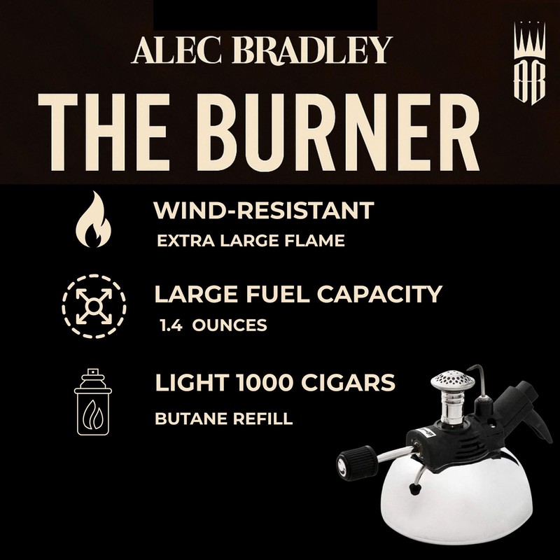 The Burner by ALEC Bradley – Table Cigar Lighter for Tobacco – Wind-Resistant, Butane-Powered, Easy to Use, Large Flame, Lights Up to 1,000 Cigars Before Refill