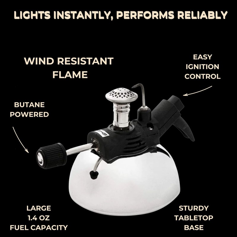 - Quick and even lighting prevents the charred, sooty taste for a full flavor
