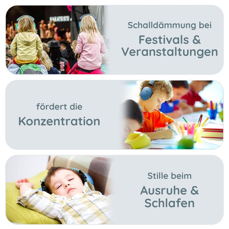 - The ear protection headphones reduce harmful and loud noise (attenuation 29 dB SNR). But does not completely isolate your child from the ambient noise, so children can for example. Easier to focus on school