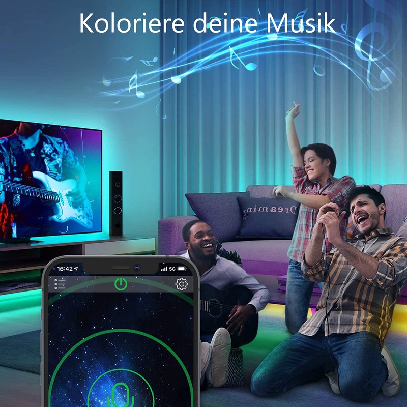 - Easy and convenient installation: We use stickers for this 10 m LED strip. There is a double-sided adhesive tape on the back of the strip. You can affix the RGB LED strip light in the bedroom or in the dining room. Simply connect the LED strip and download the app to connect it. Then you can use it at any time.