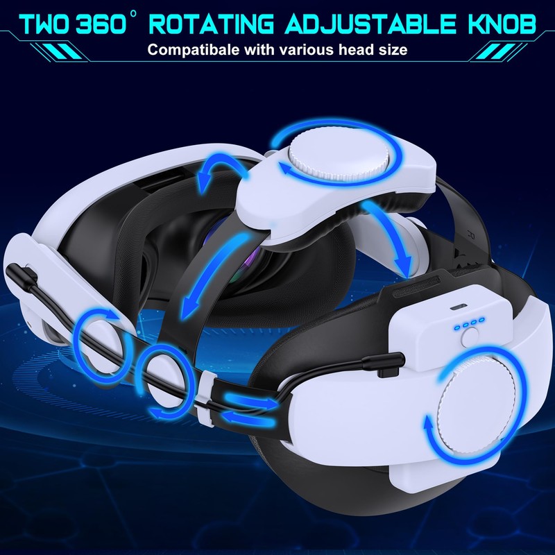 - 4-Way Adjustment The overall design of the Elite Strap for Meta Quest 3 is based on the principle of human head technique. By turning the knob, you can adjust it in four directions: up, down, front and back. It can be adjusted to your individual wearing comfort and tightness. The operation is quick and easy and the tightness is adjustable according to your wishes
