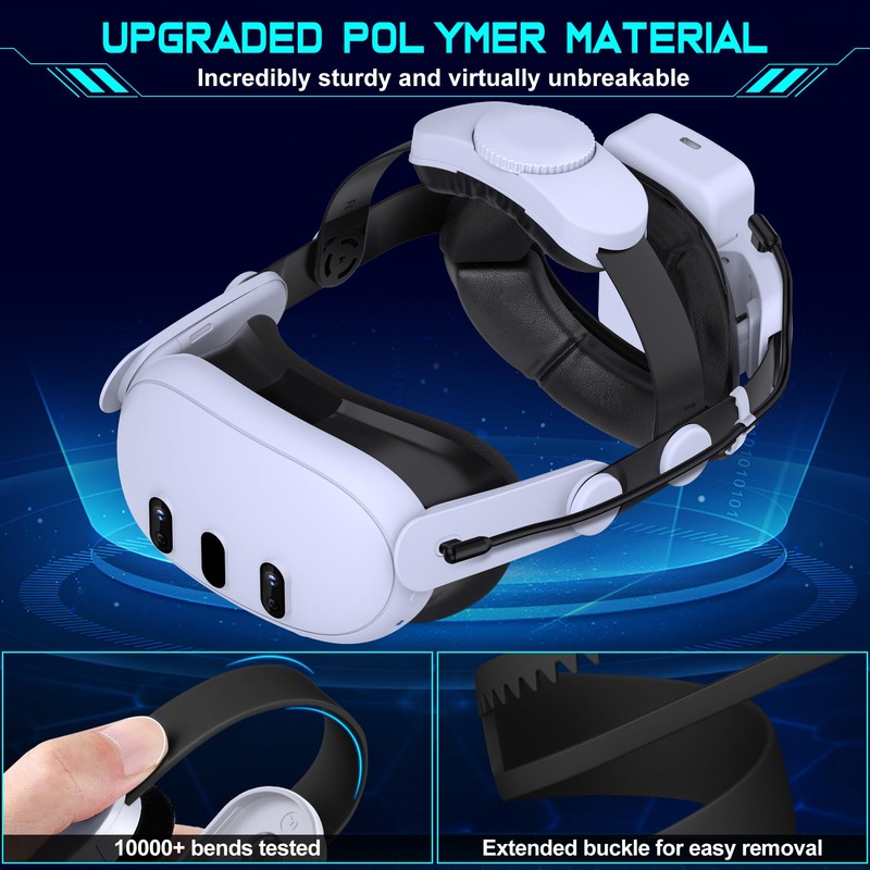 - UPGRADED SIDE STRAPS & FASTENERS We upgraded the connection fasteners of Meta Quest 3 accessories for kids and adults to make installation on the VR host easier and more accurate; Meta Quest 3/Quest 2 head strap is made of upgraded polymer material and is very sturdy. After more than 10,000 bending tests, the Meta 3/Meta 2 connection fasteners are still intact, and the high-quality Elite Strap makes your VR journey more comfortable