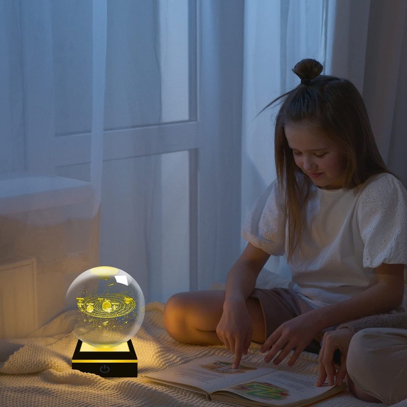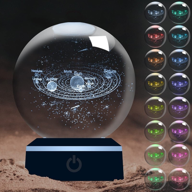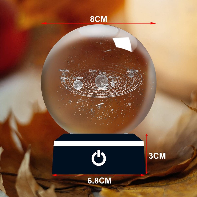 - Astronomy mood light: made of high quality crystal, no impurities, no scratches, high transparency. Names of planets engraved into the glass ball are clear, beautiful stars are around the planets.