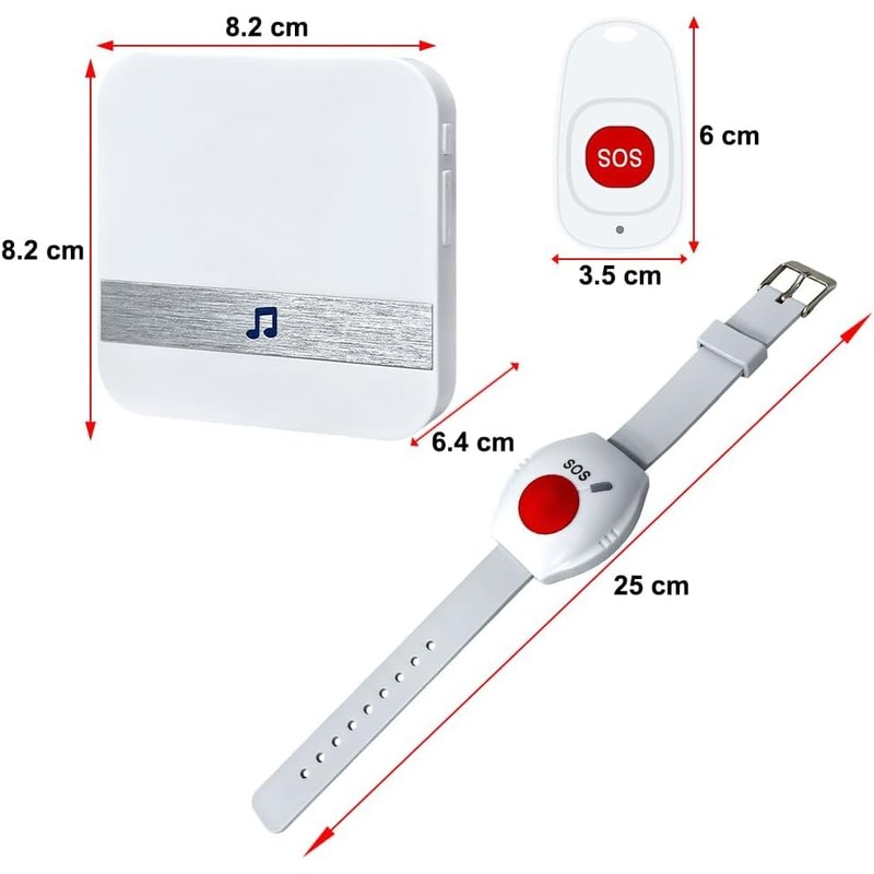 • 52 alarm options & 80 m range: 52 alarm sounds to choose from, with LED light flashes alarm. 4-level adjustable volume, max. 110dB, ideal for the elderly. No switch is designed to prevent missing the important emergency alarm. Up to 80 meters range in open area (walls and other objects reduce the range), no interference from other devices.