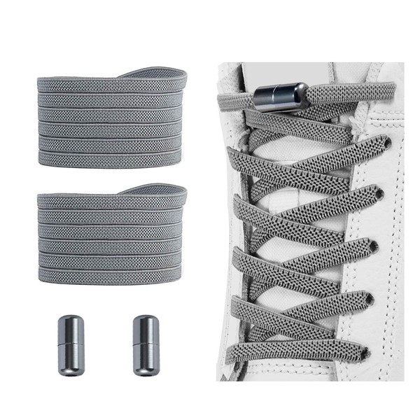 Alegrianan No Tie Shoelaces, Elastic Shoelaces for Adults/Kids,Elastic No Tie Shoe Laces, Grey, X-Large