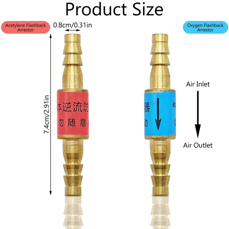 - 🔥Safty Tool: When a flashback arrestor is installed, it prevents the flame from passing through the arrestor in the event of a flashback, Avoiding serious accident. These flashback arrestors are suitable for 8mm pipe(inner diameter).