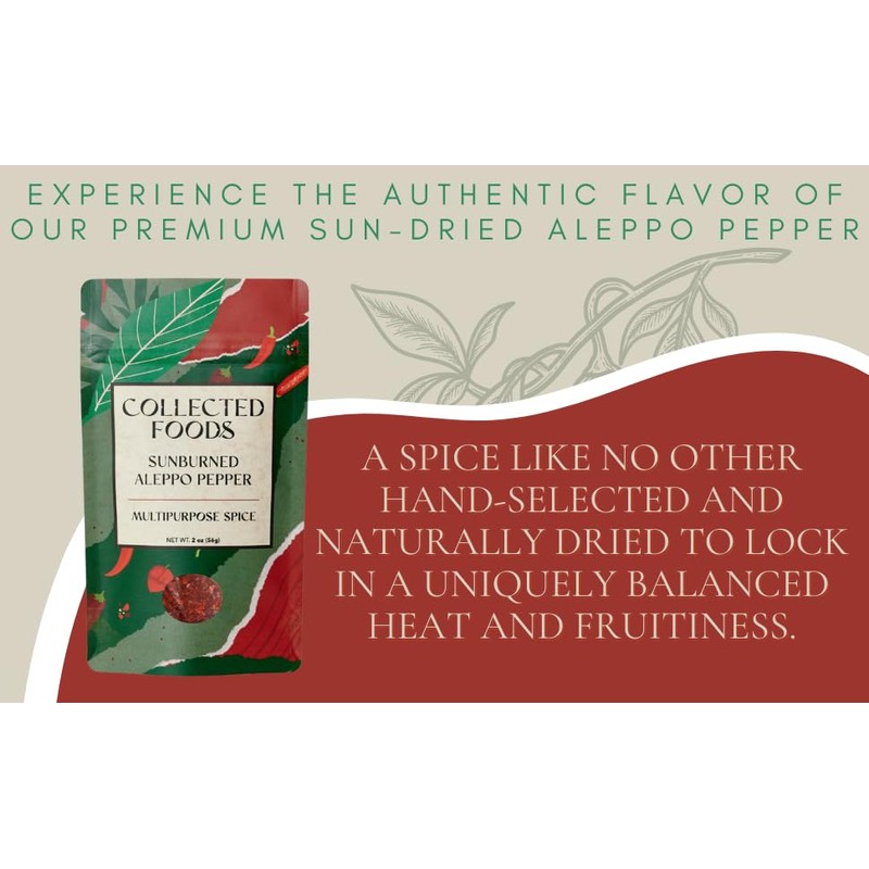 - Collected Foods has found the perfect Aleppo Pepper crushed pepper flakes for your home. It has just the right amount of heat to not be overwhelming and has the smoky depth of flavor you want.