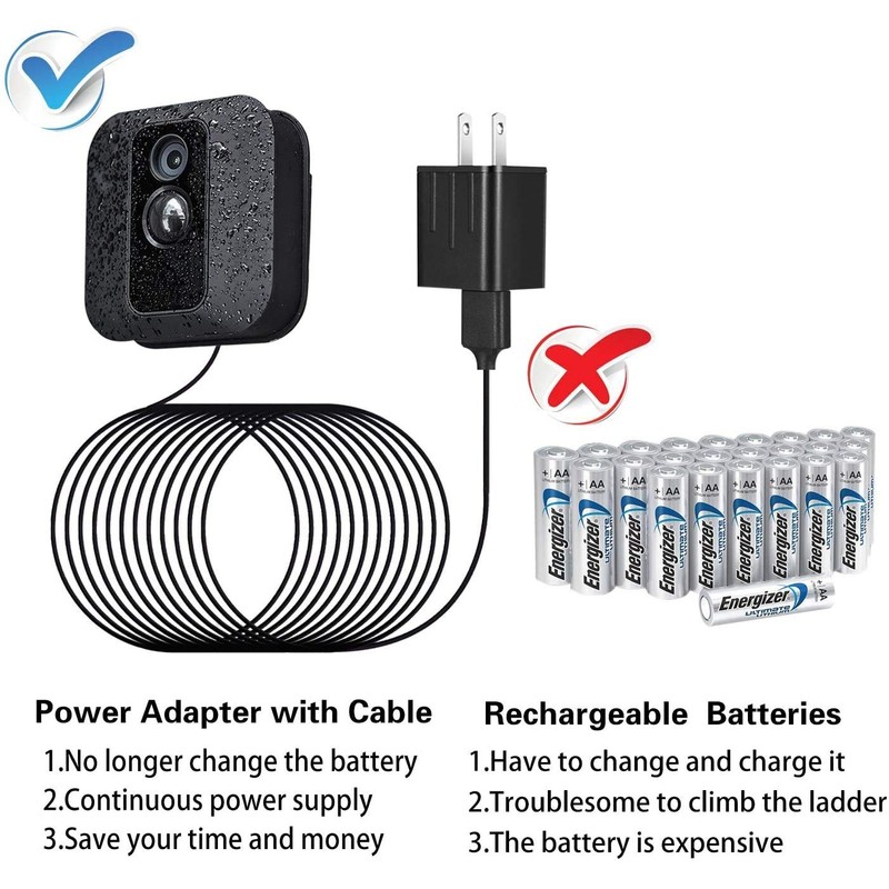 - NO NEED CHANGE THE BATTERY: 5V/1A power adapter with 25ft/7.5m cable keep charging your blink camera.