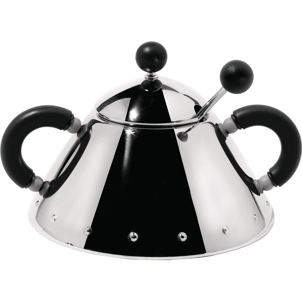 Alessi 9097 B Sugar Bowl with Spoon Stainless Steel Handles and Knobs Polyamide Black