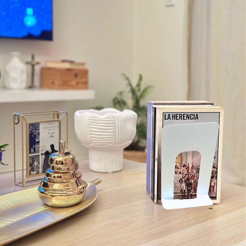 Alessk White Book Ends, Bookends for Shelves, White Metal Book Ends for Heavy Books, Decorative Book stoppers, Book end for Shelf, White bookends (White2Pairs)