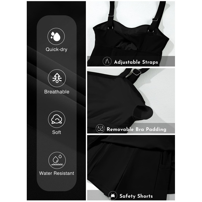 - Built in Bottom with Pockets: Modest one piece swim dress is connected to shorts bottom with pockets, making it easy to carry your cards and other items, freeing up your hands