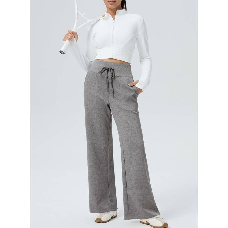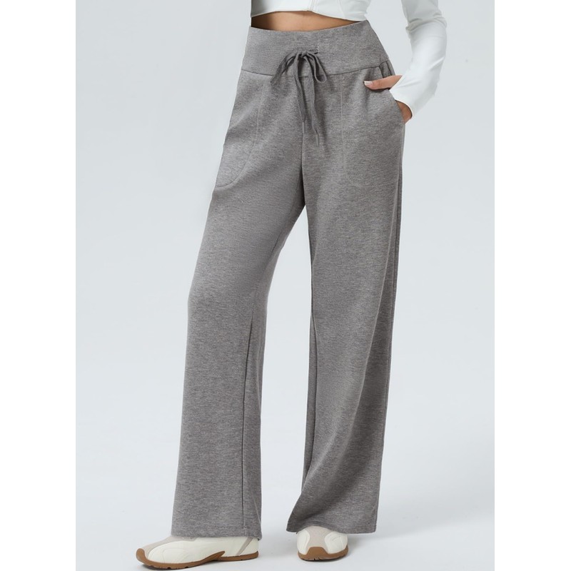 Aleumdr Women's Wide Leg Lounge Pants with Pockets Yoga Sweatpants Palazzo Casual Athletic Baggy Comfy Long Flowy High Waisted Drawstring Grey Pants for 2025 Fall X-Large