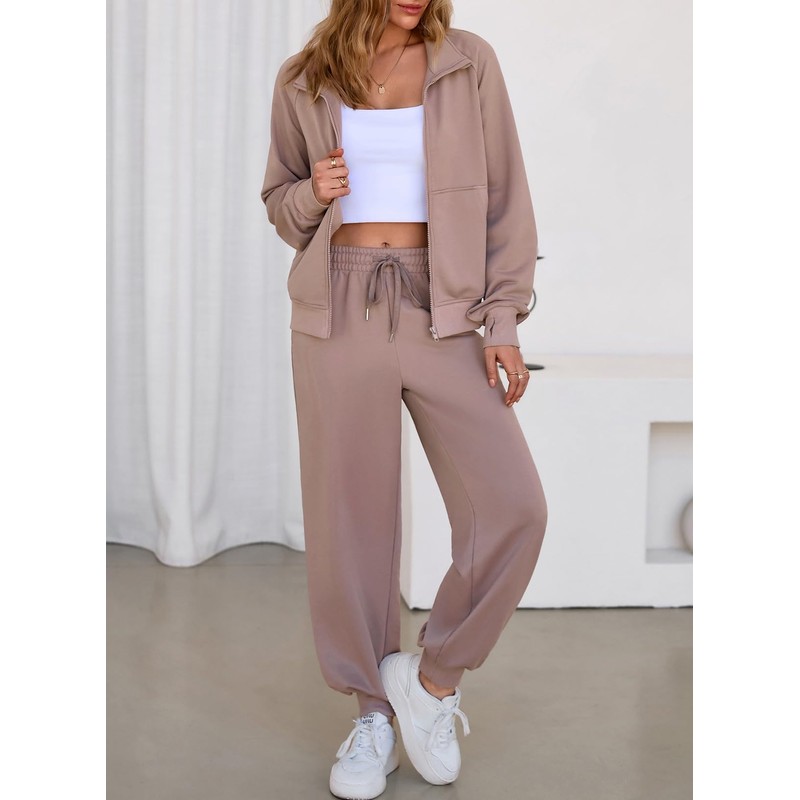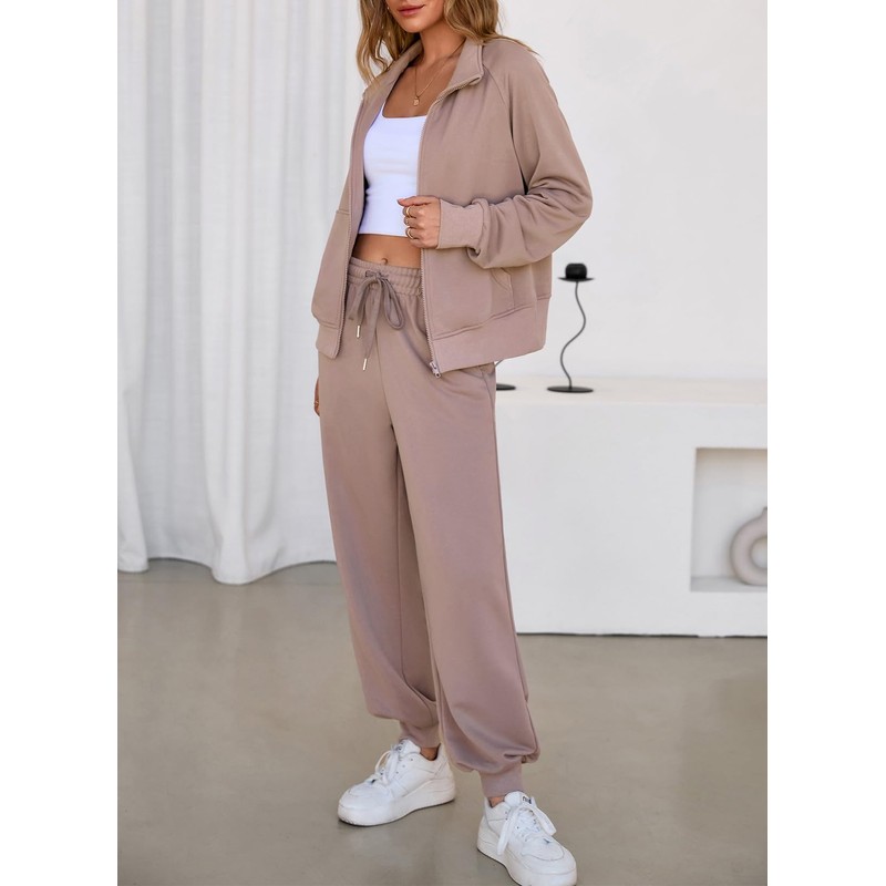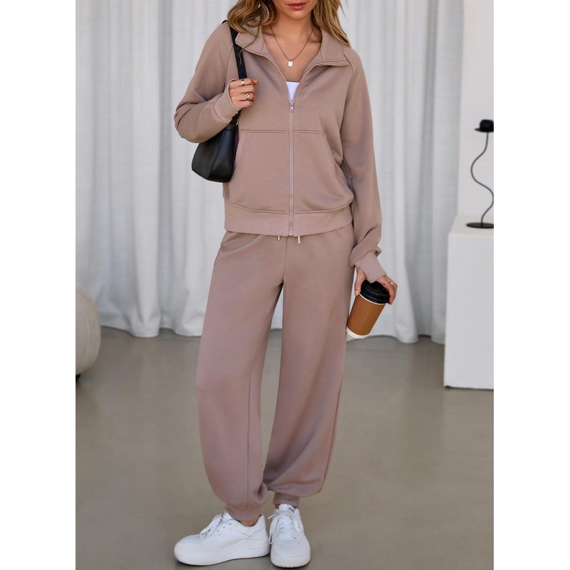 - Design: This two piece sweat set features a full zip-up jacket with a mock neck ,paired with comfy jogger sweatpants that have an adjustable drawstring and pockets. It is relaxed fit, versatile and comfortable for all body types