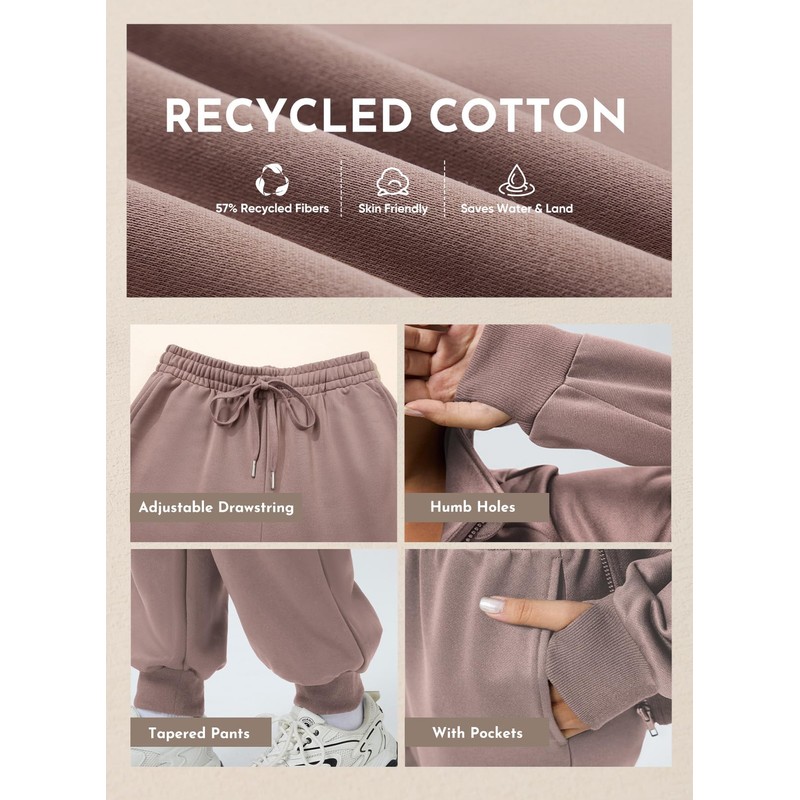 - Comfy Sweat Set: It made from a blend of 57% recycled post-consumer polyester + 43% Polyester. The recycled cotton is eco-friendly and ensures comfort, keeping you cozy in fall and winter. It offers an odorless,-made well, and warm feel