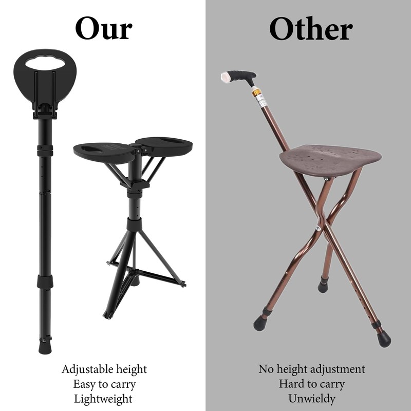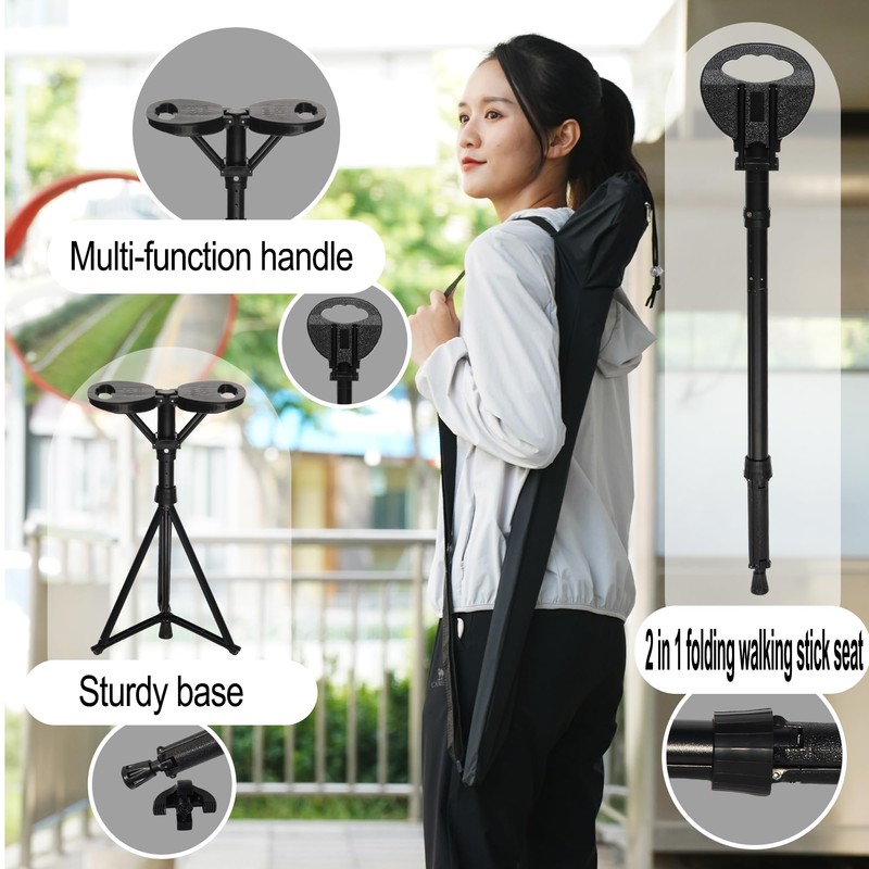 - 【Very Practical】ALEVMOOM portable walking stick with seat is designed to be convenient and practical for both men and women. With cushion, cane handle cover and carry bag, very convenient to take with you for hiking, camping and daily use.