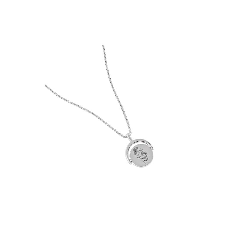 - Dive deeper into the story of you with the combined power of birthstones and birth month flowers. The June Birthstone and Flower Flip Charm Necklace is made from stainless steel for everyday wear. This elegant necklace features a sparkling June birthstone light amethyst purple glass crystal on the front. Flip the charm to reveal an engraved honeysuckle flower with antique blackening detail for a more subtle look. True inner happiness is your greatest strength.