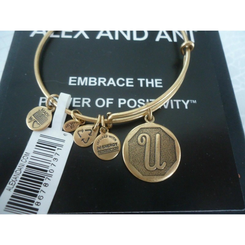ALEX AND ANI NEW Alex and Ani INITIAL U GOLD Charm Bangle Bracelet NWT & CARD