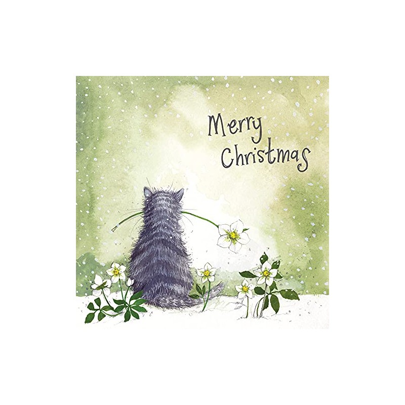 ALEX CLARK Cat and Snow Roses Christmas Card Pack of 5
