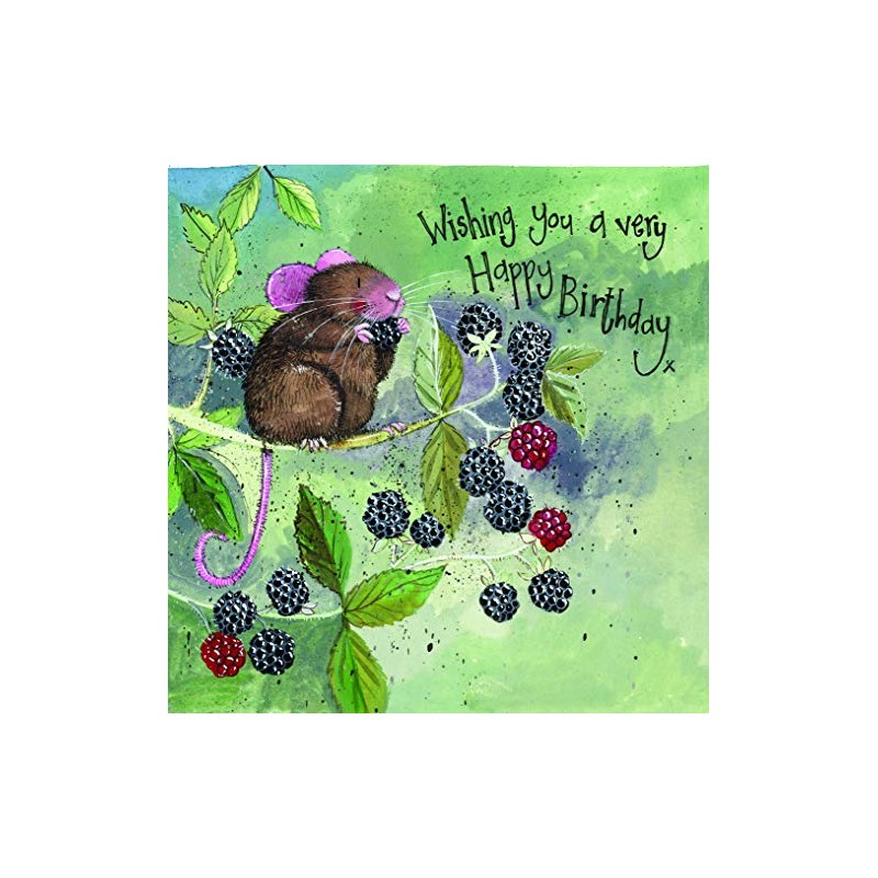 Alex Clark Mouse and Berries Birthday Card - Watercolour - Designed and Printed in UK