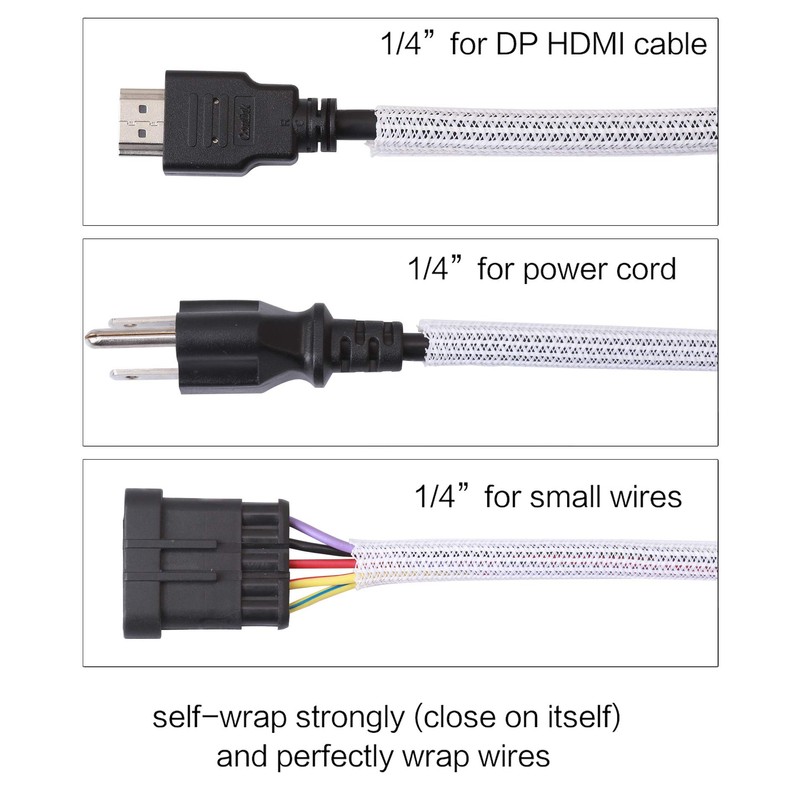 Alex Tech Self-Locking Cable Conduit Woven Cable Sheath Cable Protector Cuttable White for TV Computer Home Cinema Automotive Cable Home And Office 6 mm – 7.7 Metres