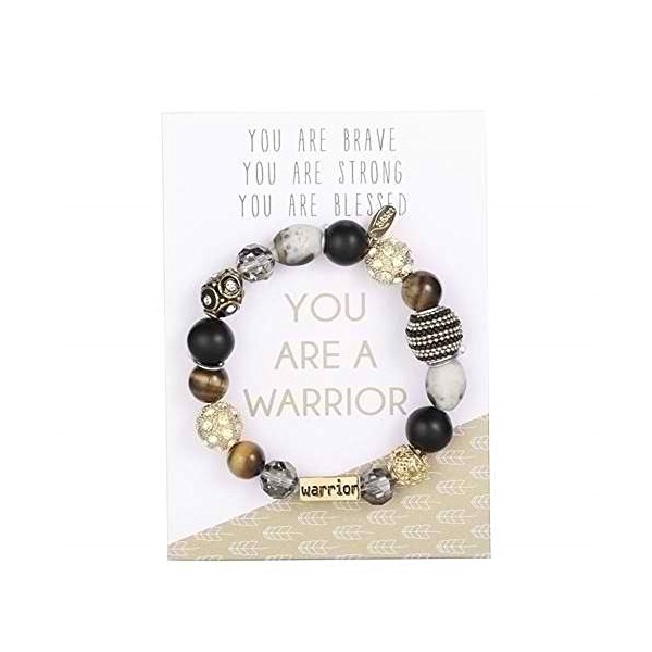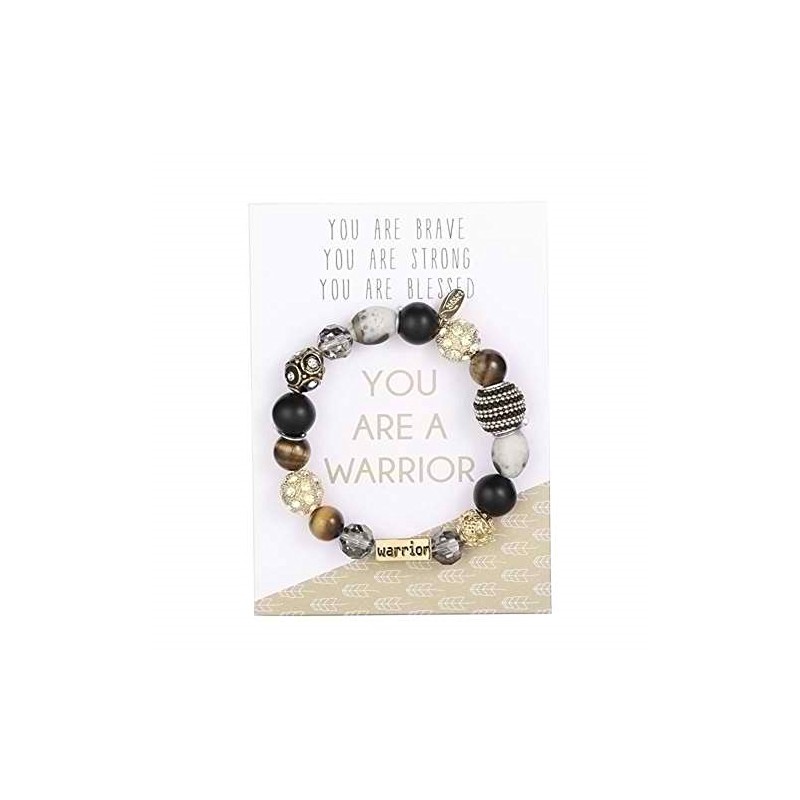 Charming bracelet with warrior sentiment and fancy charms; Made of a durable acrylic, zinc, and glass material; Measures approximately 7 inches and is a one size fits most; Perfect as a gift item as an encouragement during their trying time; Contained in protective packaging.