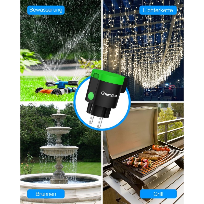 - Voice control with Alexa the timer outdoors: GreenSun WiFi socket socket is easy to set up via the app and can be easily added to Alexa. Connect your fridges, washing machines and even water heaters - almost any of your household appliances. Control your devices easily with voice commands.