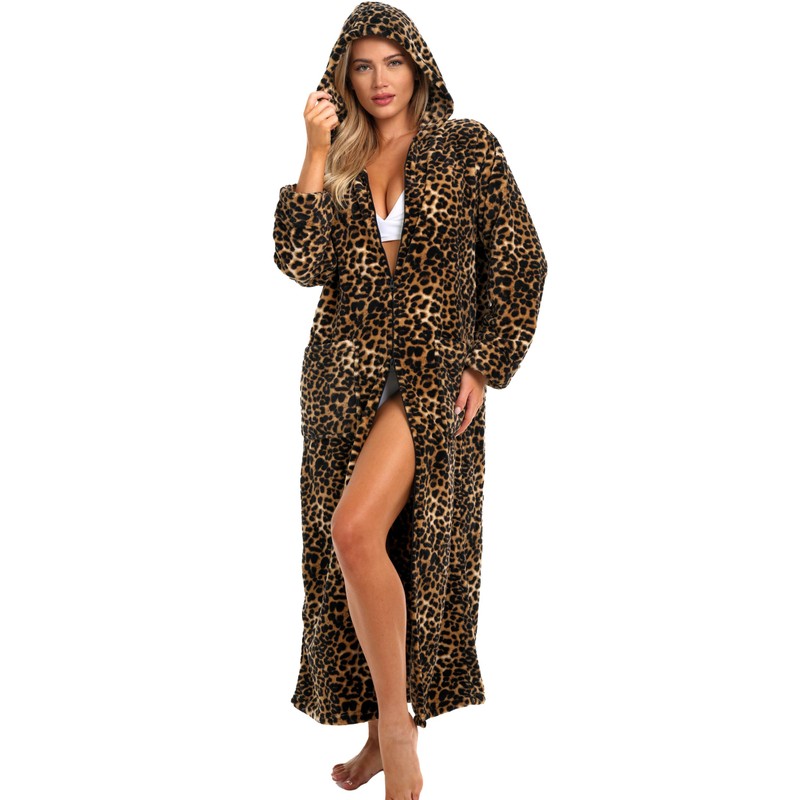 - THICKER - 2 times thicker than average zip robes for women. Hooded, full length with zipper typically means heavy, but our zip front robes for women are surprisingly lightweight. Size XL, leopard robe by Alexander del Rossa.