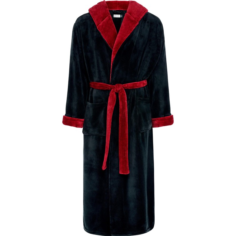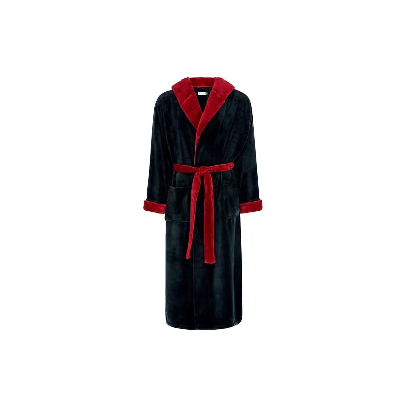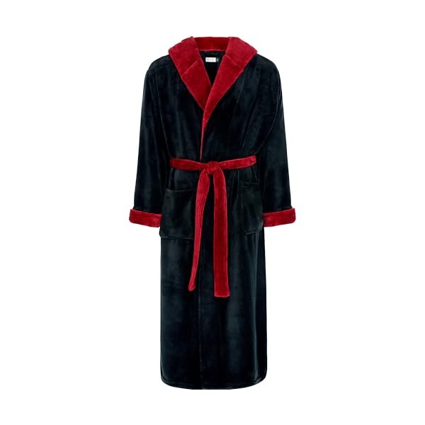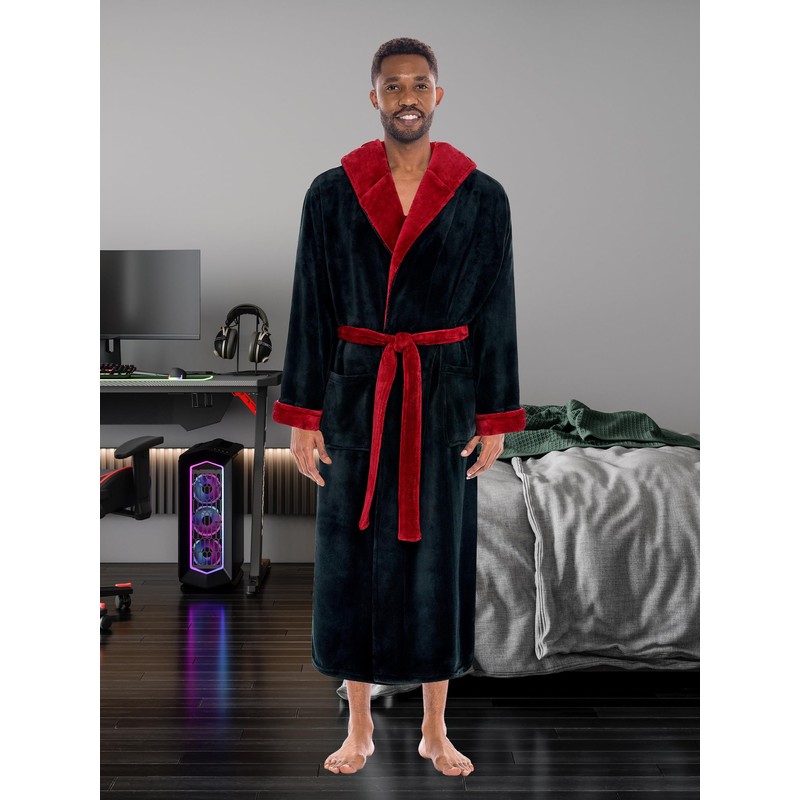 Alexander Del Rossa Mens Robe, Plush Fleece Hooded Bathrobe Men, Men's Bathrobes, Big and Tall Bath Robe for Men Black with Burgundy Contrast 2XL (A0125BKB2X)