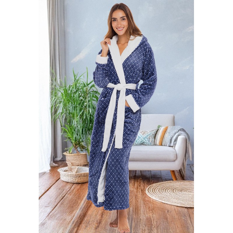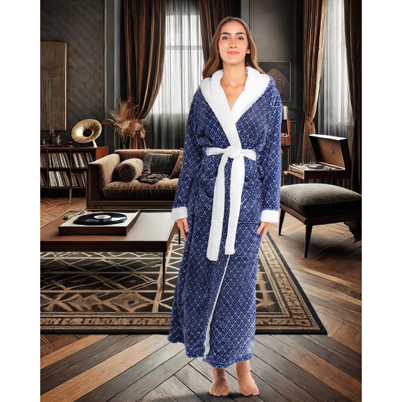 - THICKER - 2 times thicker than average fleece robe for women bathrobe. Hooded Bath robes female with male versions also available. The ideal, stylish housecoats for women for Fall and Winter. Size XL, Moroccan Trellis robe by Alexander del Rossa.