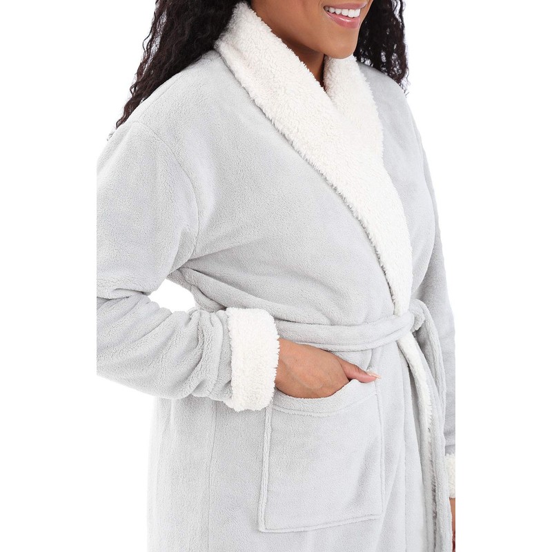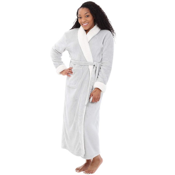 Alexander Del Rossa Women's Warm Fleece Robe, Long Plush Bathrobe, Large-XL Light Gray with Sherpa (A0274LGRXL)